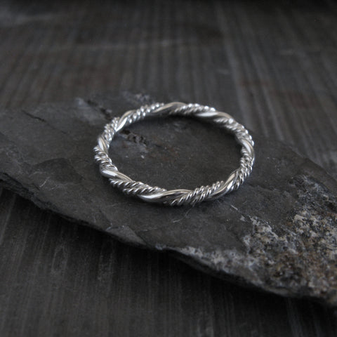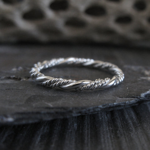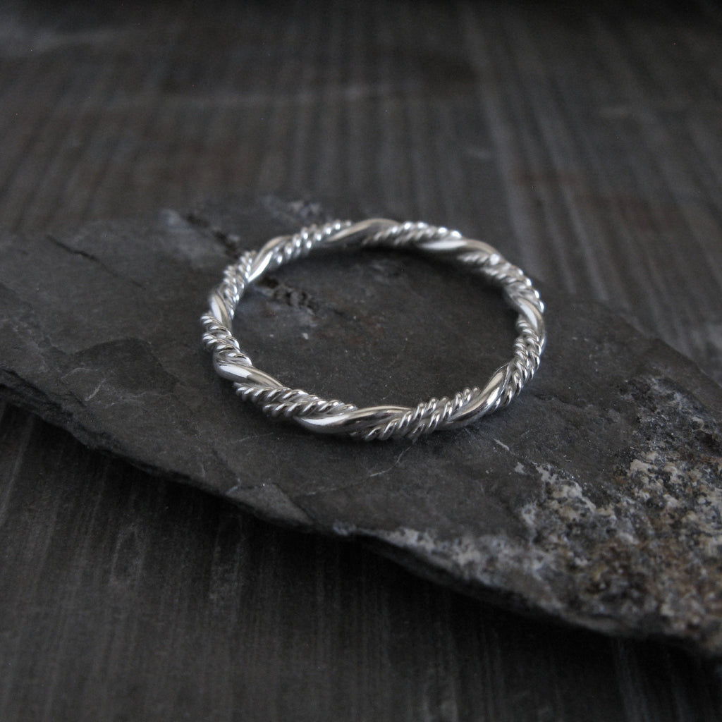 Refined and timeless, this sterling silver bead twist ring band is handcrafted with a delicate twisted design that adds subtle texture and visual interest. The softly rounded twists catch the light beautifully, creating an elegant look that remains understated and easy to wear.