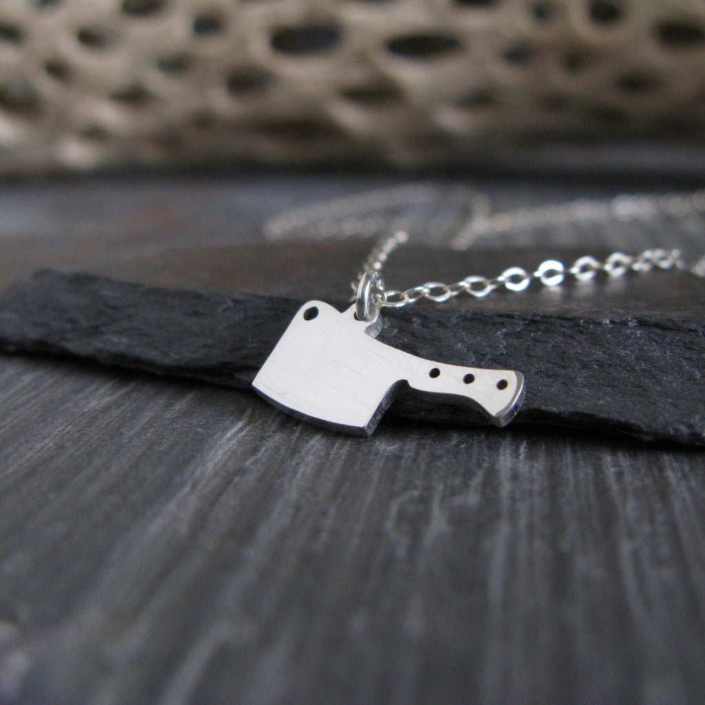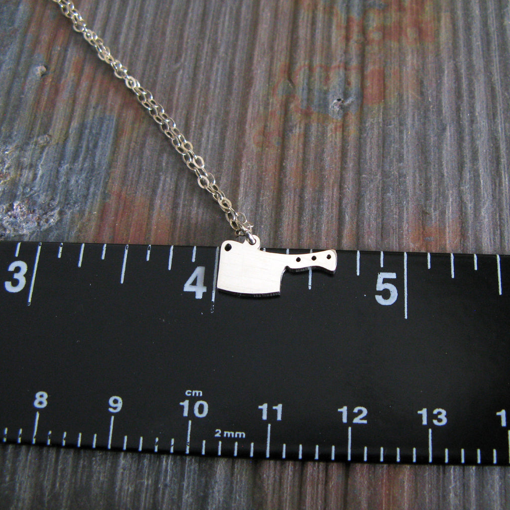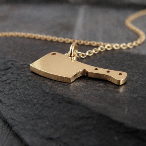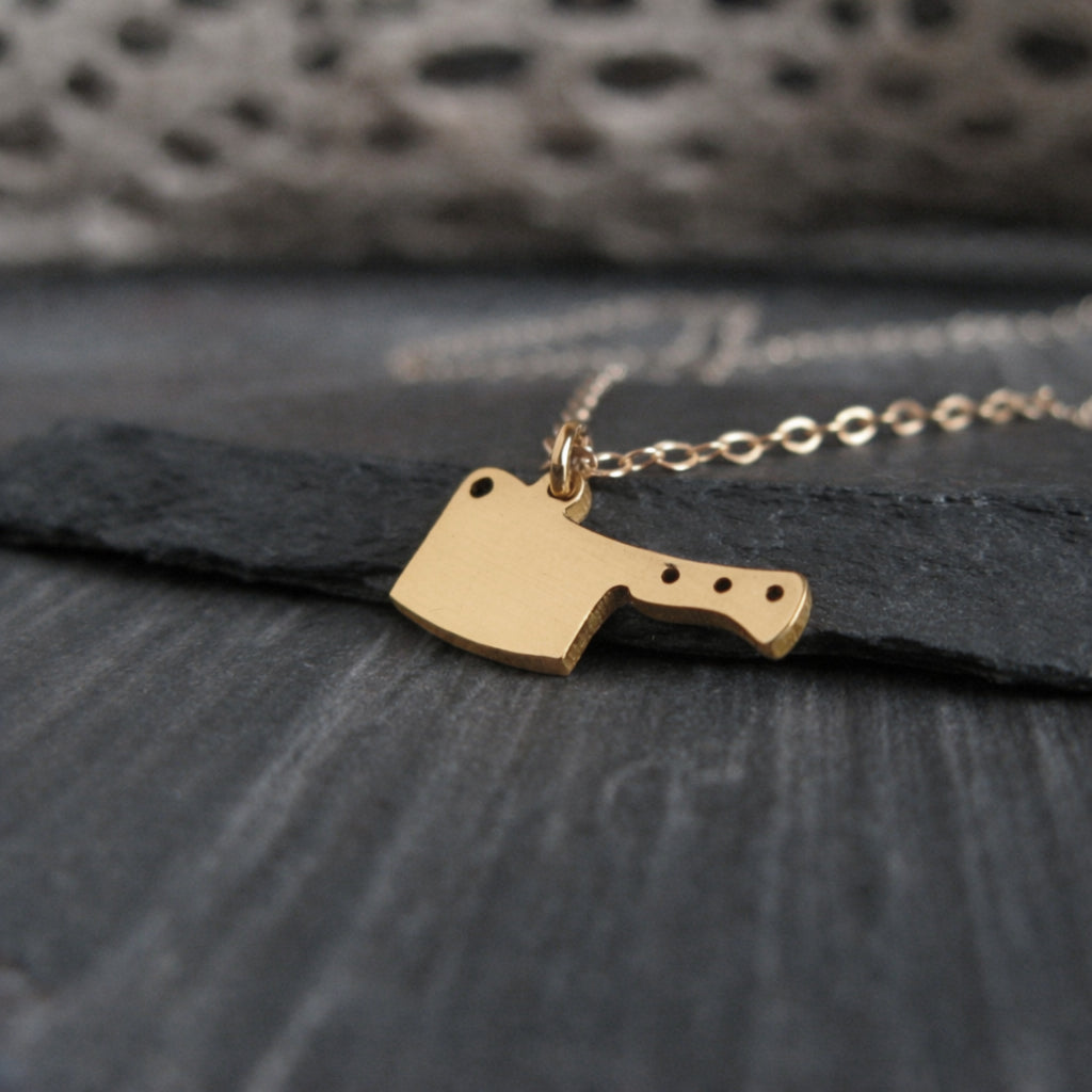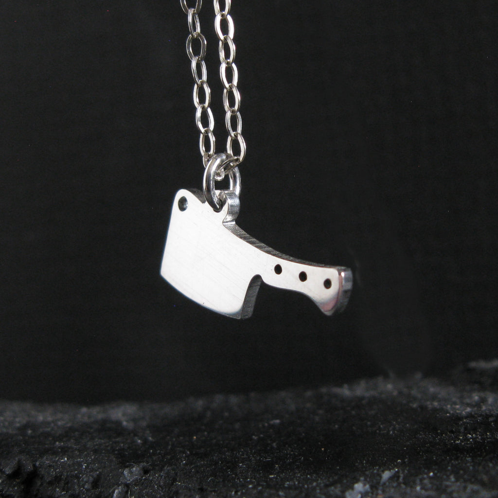 Bold, minimal, and a little rebellious, this handcrafted cleaver pendant necklace is inspired by the tools of the kitchen and the artistry of handmade metalwork. Designed for everyday wear, this small but striking pendant adds personality without overpowering your style. Each piece is cut from sheet metal and handmade in our Arizona studio, creating a unique piece of jewelry for chefs, food lovers, and anyone drawn to strong, simple design.