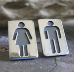 A very unique pair of stud earrings featuring a bathroom silhouette couple. A must have for geeks everywhere. They are handcrafted from sterling silver. You may choose from polished with dark engraving or polished.